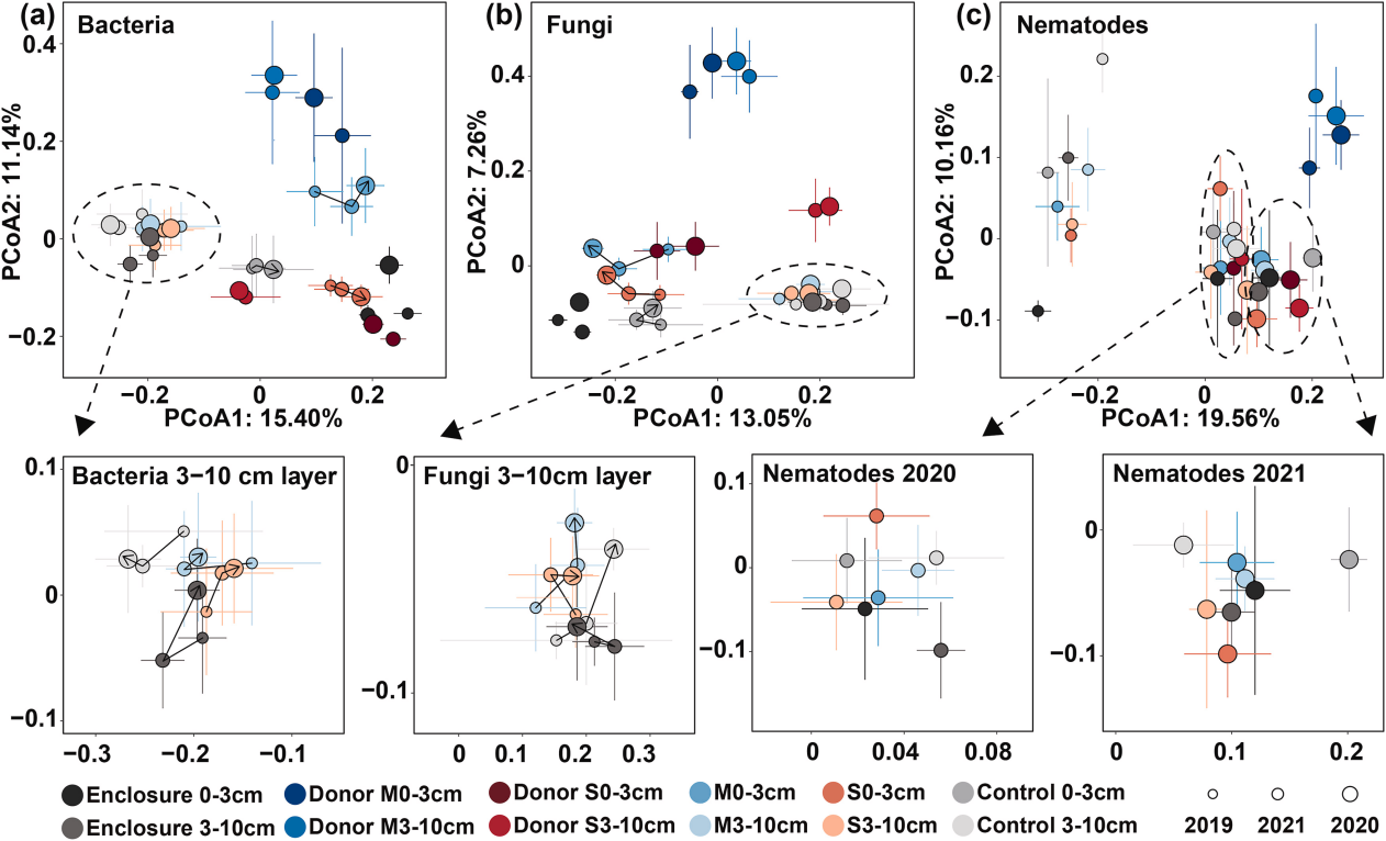 中國(guó)科學(xué)院沈陽(yáng)應(yīng)用生態(tài)研究所土壤健康維持機(jī)制與生物調(diào)控途徑創(chuàng)新組群研究發(fā)現(xiàn),土壤接種雖改變了退化草原的生物群落組成,但其效應(yīng)主要局限于接種層的供體...
